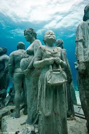 Centenas de estátuas de homens, mulheres e crianças foram afundadas no mar de Cancun, no México – de propósito. A idéia do artista é que o jardim de estátuas se torne a casa de corais, peixes e algas.